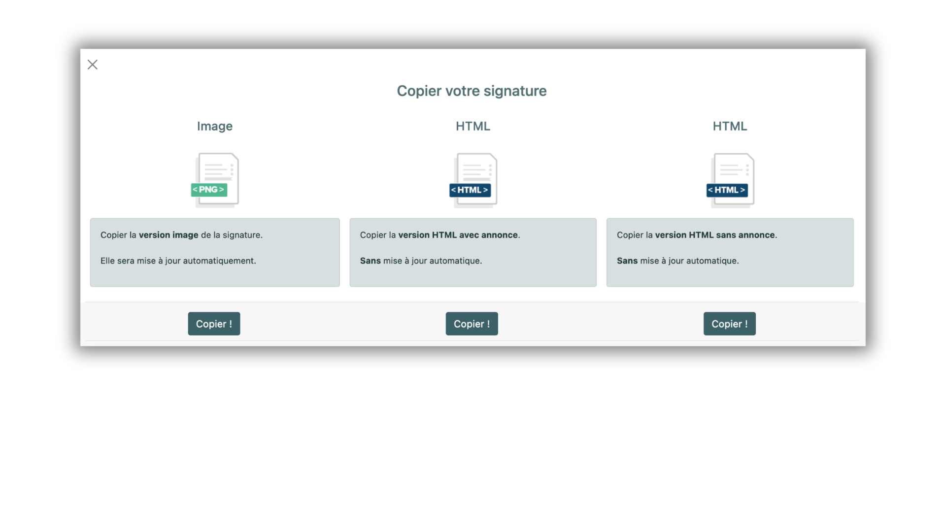 Cliquez sur copier votre signature