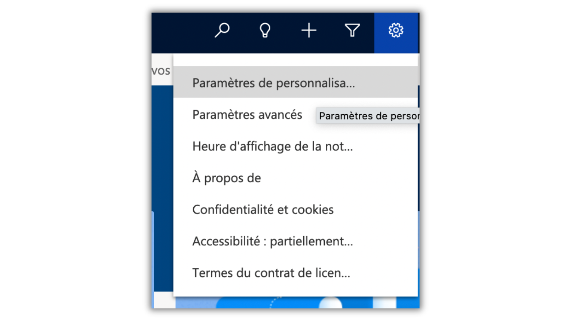 => Cliquez sur la roue crantée. Puis sur Paramètres de personalisation