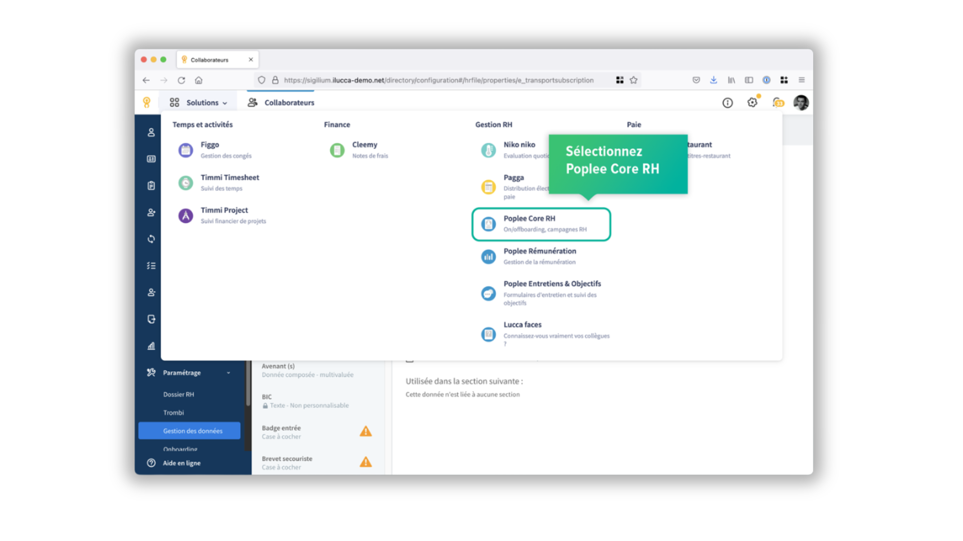 1 - Dans la partie Solutions, sélectionnez Poplee RH