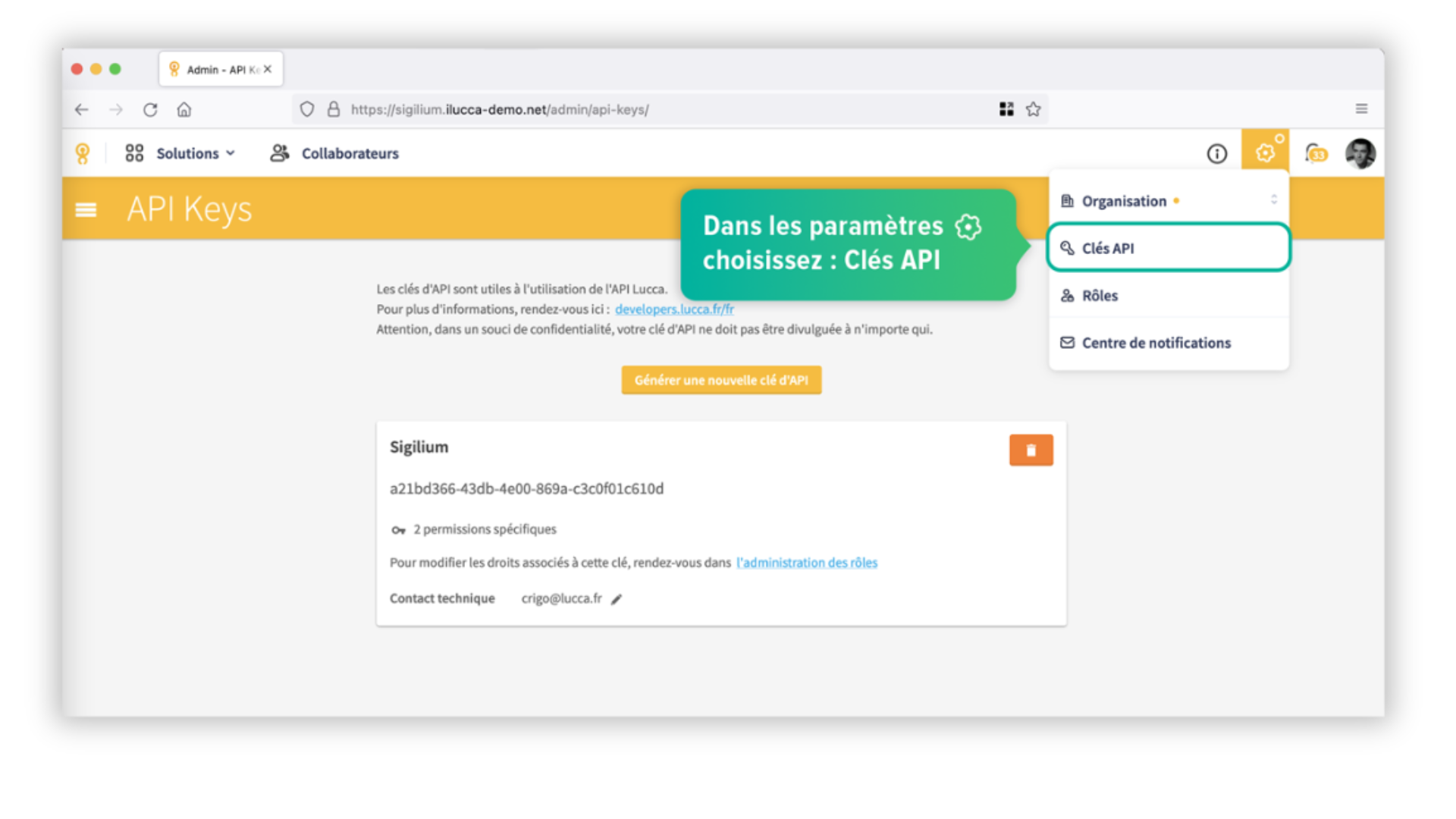 Pour Intégrer Lucca & Sigilium vous allez devoir créer une clé API.